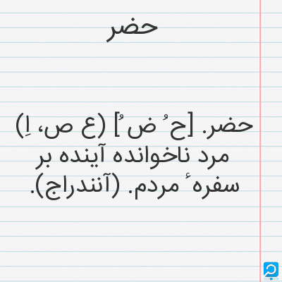 حضر. [ح ُ ض ُ] (ع ص، اِ) مرد ناخوانده آینده بر سفره ٔ مردم. (آنندراج).