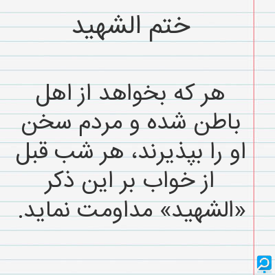 هر که بخواهد از اهل باطن شده و مردم سخن او را بپذیرند، هر شب قبل از خواب بر این ذکر «الشهید» مداومت نماید.