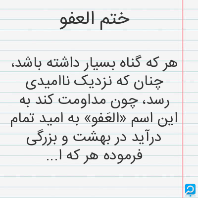 هر که گناه بسیار داشته باشد، چنان که نزدیک ناامیدی رسد، چون مداومت کند به این اسم «العَفو» به امید تمام درآید در بهشت و بزرگی فرموده هر که این اسم را بسیار گوید، برسد به مقامات عالیه ان شاءالله.
