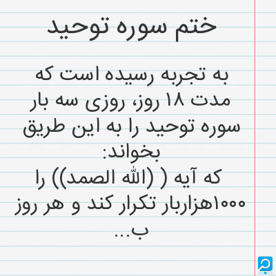 که مدت ۷ هفت روز، بعد ازنمازصبح روزی ۱۰۰بار سوره توحید را بخوان ومیان ختم صحبت نکن