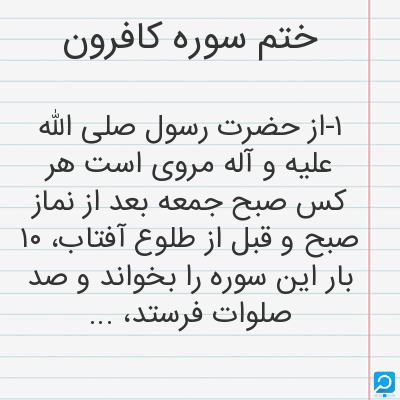 ۲- از حضرت امام صادق علیه السلام نقل شده است که سوره کافرون را به جهت حفظ ایمان هر روز ۷ بار بخوانند.