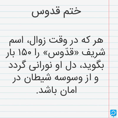 هر که در وقت زوال، اسم شریف «قدّوس» را ۱۵۰ بار بگوید، دل او نورانی گردد و از وسوسه شیطان در امان باشد.
