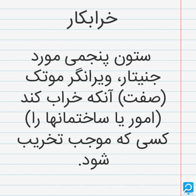 ستون پنجمی مورد جنیتار، ویرانگر موتک (صفت) آنکه خراب کند (امور یا ساختمانها را) کسی که موجب تخریب شود.