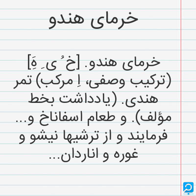 خرمای هندو. [خ ُ ی ِ هَِ] (ترکیب وصفی، اِ مرکب) تمر هندی. (یادداشت بخط مؤلف). و طعام اسفاناخ و... فرمایند و از ترشیها نیشو و غوره و اناردانک و سماق و خرمای هندو. (ذخیره ٔ خوارزمشاهی). خرمای هندو در دهان داشتن تشنگی بنشاند. (ذخیره ٔ خوارزمشاهی).