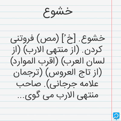 خشوع در فرهنگ لغات ها (دهخدا،معین و ... ) + سایر منابع اطلاعاتی