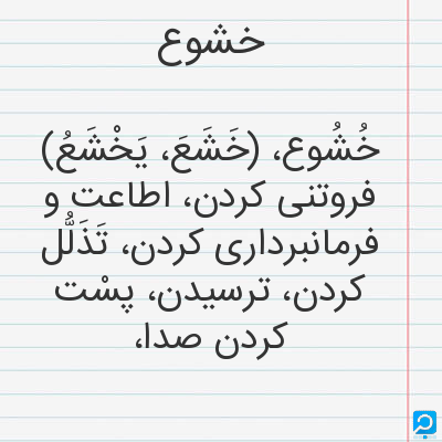 خُشُوع، (خَشَعَ، یَخْشَعُ) فروتنی کردن، اطاعت و فرمانبرداری کردن، تَذَلُّل کردن، ترسیدن، پسْت کردن صدا،