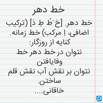 خط دهر در فرهنگ لغات ها (دهخدا،معین و ... ) + سایر منابع اطلاعاتی