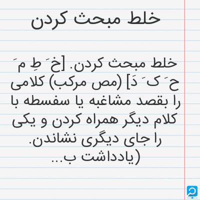 خلط مبحث کردن. [خ َ طِ م َ ح َ ک َ دَ] (مص مرکب) کلامی را بقصد مشاغبه یا سفسطه با کلام دیگر همراه کردن و یکی را جای دیگری نشاندن. (یادداشت بخط مؤلف).