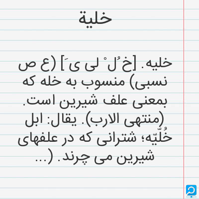 خلیة در فرهنگ لغات ها (دهخدا،معین و ... ) + سایر منابع اطلاعاتی