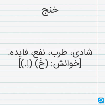 شادی، طرب، نفع، فایده. [خوانش: (خَ) (اِ.)]
