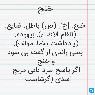 خنج. [خ َ] (ص) باطل. ضایع. (ناظم الاطباء). بیهوده. (یادداشت بخط مؤلف):