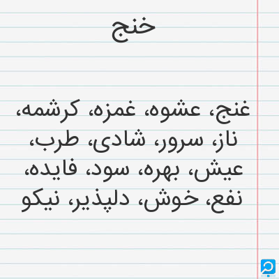 غنج، عشوه، غمزه، کرشمه، ناز، سرور، شادی، طرب، عیش، بهره، سود، فایده، نفع، خوش، دلپذیر، نیکو