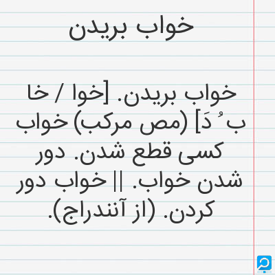 خواب بریدن. [خوا / خا ب ُ دَ] (مص مرکب) خواب کسی قطع شدن. دور شدن خواب. || خواب دور کردن. (از آنندراج).