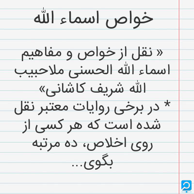 « نقل از خواص و مفاهیم اسماء الله الحسنی ملاحبیب الله شریف کاشانی»