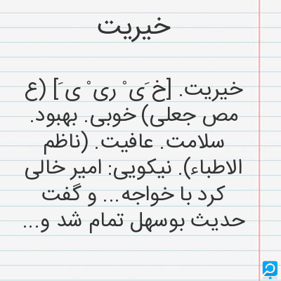 خیریت در فرهنگ لغات ها (دهخدا،معین و ... ) + سایر منابع اطلاعاتی