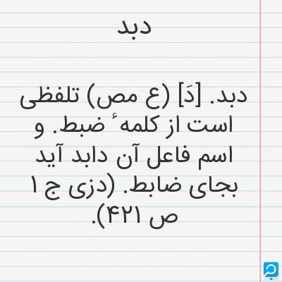 دبد. [دَ] (ع مص) تلفظی است از کلمه ٔ ضبط. و اسم فاعل آن دابد آید بجای ضابط. (دزی ج 1 ص 421).