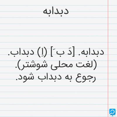 دبدابه. [دَ ب َ] (اِ) دبداب. (لغت محلی شوشتر). رجوع به دبداب شود.