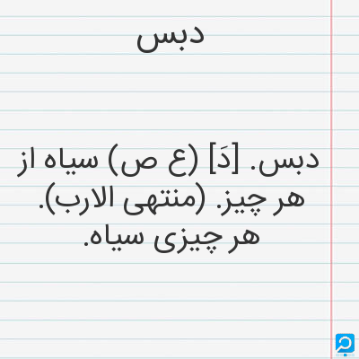 دبس. [دَ] (ع ص) سیاه از هر چیز. (منتهی الارب). هر چیزی سیاه.