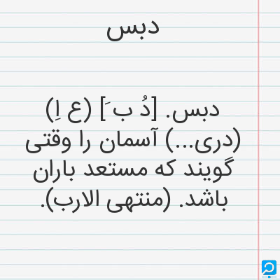 دبس. [دُ ب َ] (ع اِ) (دری...) آسمان را وقتی گویند که مستعد باران باشد. (منتهی الارب).