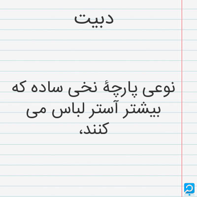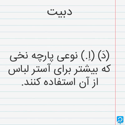دبیت. [دَ] (اِ) قسمی قماش نخی. نوعی منسوج پنبه ای و آن بیشتر آستر لباس و رویه ٔ لحاف و تشک را بکارست.