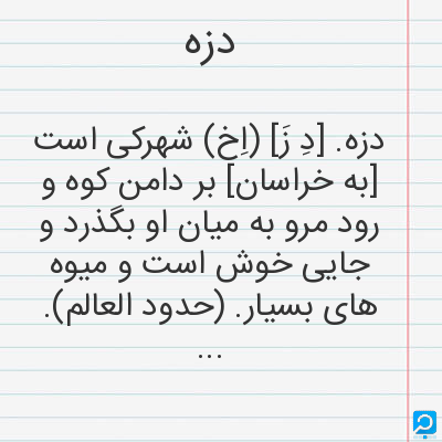 دزه در فرهنگ لغات ها (دهخدا،معین و ... ) + سایر منابع اطلاعاتی