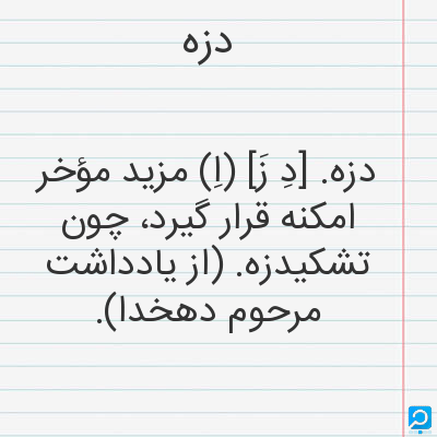 دزه. [دِ زَ] (اِ) مزید مؤخر امکنه قرار گیرد، چون تشکیدزه. (از یادداشت مرحوم دهخدا).