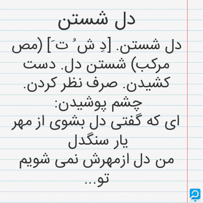 دل شستن. [دِ ش ُ ت َ] (مص مرکب) شستن دل. دست کشیدن. صرف نظر کردن. چشم پوشیدن: