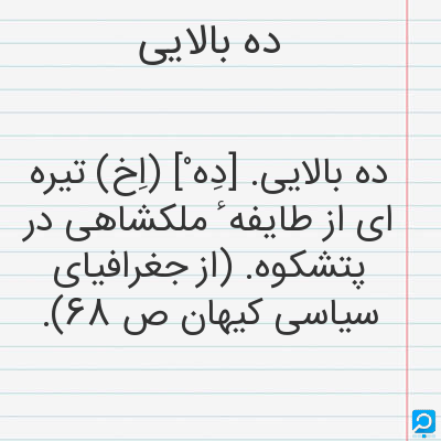 ده بالایی. [دِه ْ] (اِخ) تیره ای از طایفه ٔ ملکشاهی در پتشکوه. (از جغرافیای سیاسی کیهان ص 68).