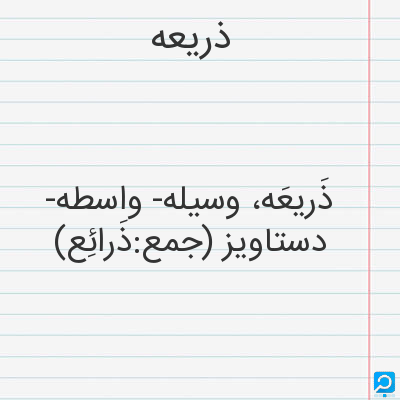 ذَریعَه، وسیله- واسطه- دستاویز (جمع:ذَرائِع)