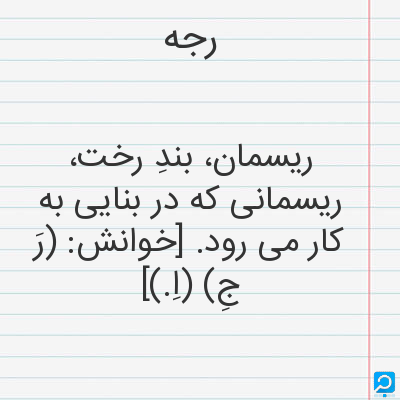 ریسمان، بندِ رخت، ریسمانی که در بنایی به کار می رود. [خوانش: (رَ جِ) (اِ.)]