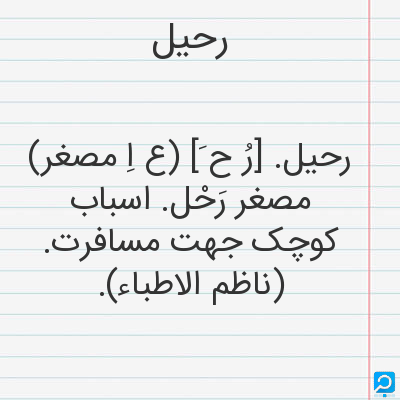 رحیل. [رُ ح َ] (ع اِ مصغر) مصغر رَحْل. اسباب کوچک جهت مسافرت. (ناظم الاطباء).
