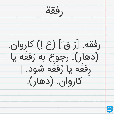رفقه. [رَ ق َ] (ع اِ) کاروان. (دهار). رجوع به رَفقَه یا رِفقَه یا رُفقَه شود. || کاروان. (دهار).