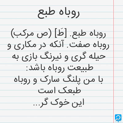 روباه طبع. [طَ] (ص مرکب) روباه صفت. آنکه در مکاری و حیله گری و نیرنگ بازی به طبیعت روباه باشد: