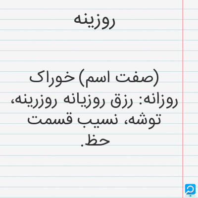 (صفت اسم) خوراک روزانه: رزق روزیانه روزرینه، توشه، نسیب قسمت حظ.
