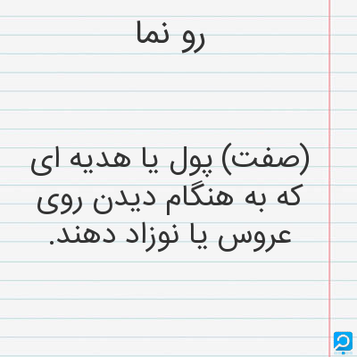 (صفت) پول یا هدیه ای که به هنگام دیدن روی عروس یا نوزاد دهند.