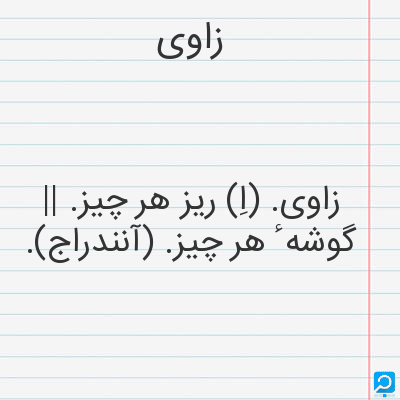 زاوی. (اِ) ریز هر چیز. || گوشه ٔ هر چیز. (آنندراج).