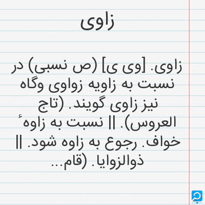 زاوی. [وی ی] (ص نسبی) در نسبت به زاویه زواوی وگاه نیز زاوی گویند. (تاج العروس). || نسبت به زاوه ٔ خواف. رجوع به زاوه شود. || ذوالزوایا. (قاموس نجاری بیک). شریان زاوی. سن زاوی.