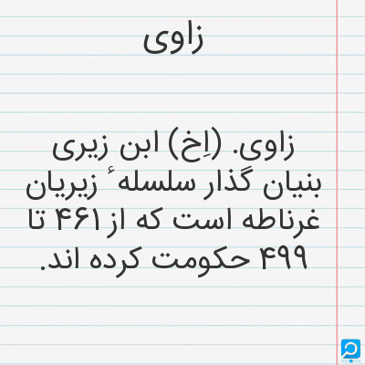 زاوی. (اِخ) ابن زیری بنیان گذار سلسله ٔ زیریان غرناطه است که از 461 تا 499 حکومت کرده اند.