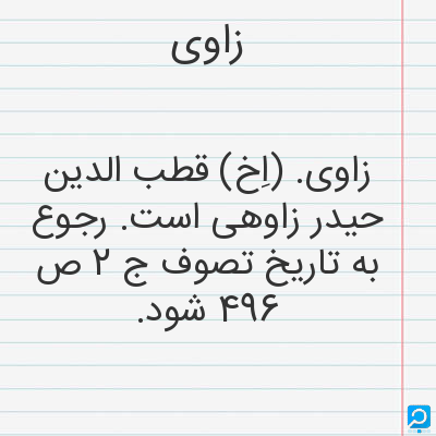 زاوی. (اِخ) قطب الدین حیدر زاوهی است. رجوع به تاریخ تصوف ج 2 ص 496 شود.