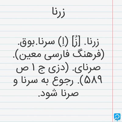 زرنا در فرهنگ لغات ها (دهخدا،معین و ... ) + سایر منابع اطلاعاتی