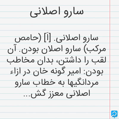 سارو اصلانی. [اَ] (حامص مرکب) سارو اصلان بودن. آن لقب را داشتن، بدان مخاطب بودن: امیر گونه خان در ازاء مردانگیها به خطاب سارو اصلانی معزز گشت. (عالم آرا چ امیرکبیر ج 2 ص 910). بلقب سارو اصلانی معزز و سربلند گشت. (همان کتاب ص 1041).