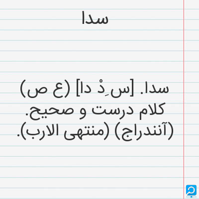 سدا. [س ِدْ دا] (ع ص) کلام درست و صحیح. (آنندراج) (منتهی الارب).