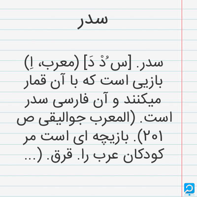 سدر. [س ُدْ دَ] (معرب، اِ) بازیی است که با آن قمار میکنند و آن فارسی سدر است. (المعرب جوالیقی ص 201). بازیچه ای است مر کودکان عرب را. قرق. (منتهی الارب). بازیچه ای است کودکان را، معرب است. (اقرب الموارد). رجوع به قرق شود.