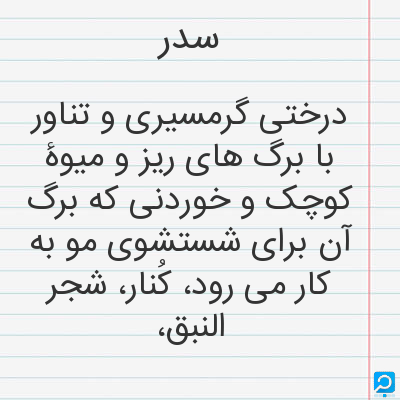 سدر در فرهنگ لغات ها (دهخدا،معین و ... ) + سایر منابع اطلاعاتی