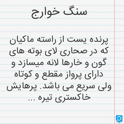 پرنده یست از راسته ماکیان که در صحاری لای بوته های گون و خارها لانه میسازد و دارای پرواز مقطع و کوتاه ولی سریع می باشد. پرهایش خاکستری تیره و قدش کوچکتر از کبک است. از دانه های بذور مختلف تغذیه میکند. محل زندگیش در آسیای مرکزی و غربی و آسیای صغیر است و در ایران بسیار فراوان بوده است و آنرا جهت استفاده از گوشتش شکار میکنند (متاسفانه به علت شکار بیرون از قاعده در ایران رو به انقراض است) باقرقره قطا سنگ خور سنگ خوار اسفهرود سفرود سنگین خوار.