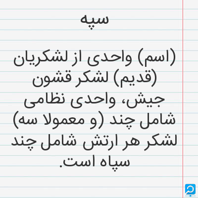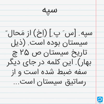 سپه در فرهنگ لغات ها (دهخدا،معین و ... ) + سایر منابع اطلاعاتی