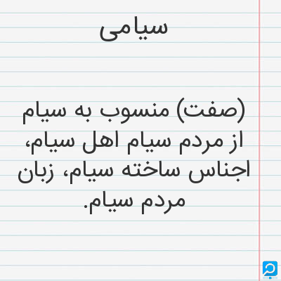 (صفت) منسوب به سیام از مردم سیام اهل سیام، اجناس ساخته سیام، زبان مردم سیام.