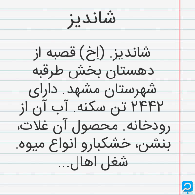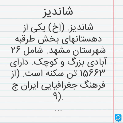 شاندیز در فرهنگ لغات ها (دهخدا،معین و ... ) + سایر منابع اطلاعاتی