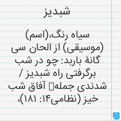 (اسم) (موسیقی) از الحان سیگانۀ باربد: چو در شب برگرفتی راه شبدیز / شدندی جملهٴ آفاق شبخیز (نظامی۱۴: ۱۸۱)،