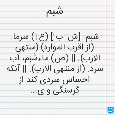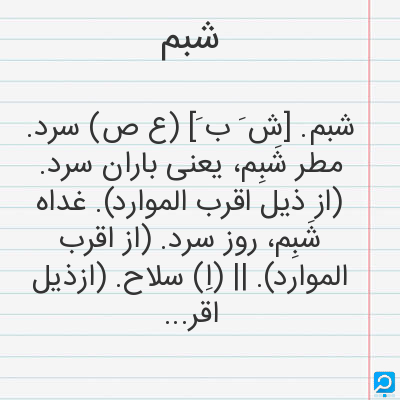 شبم در فرهنگ لغات ها (دهخدا،معین و ... ) + سایر منابع اطلاعاتی